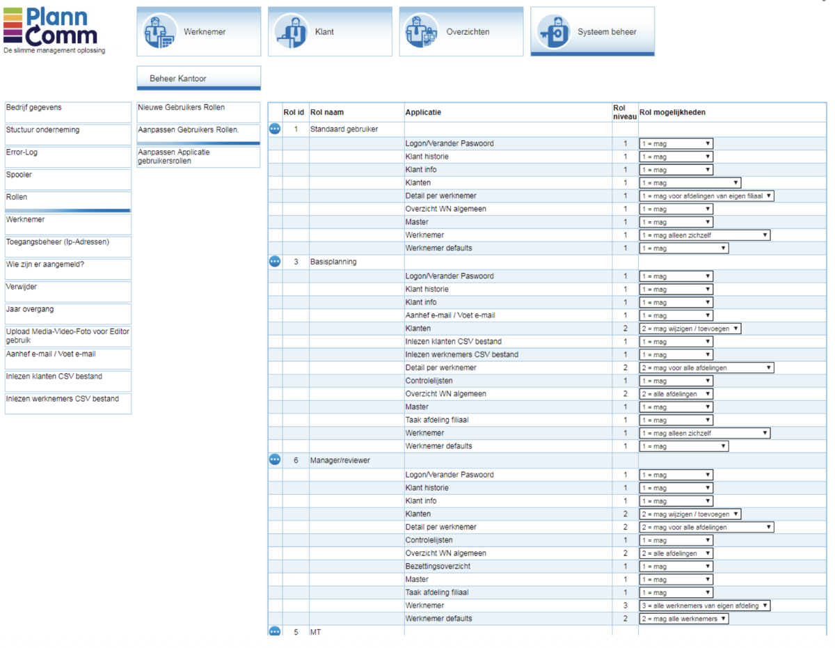 U richt als systeembeheerder de werknemers in. Zo kunt u per werknemer bepalen in welke taal PlannComm moet worden getoond en welke rol u een werknemer toewijst. Daarnaast richt u het werkschema in op basis waarvan de beschikbare uren per maand worden berekend en koppelt u de werknemer aan één of meerdere kantoren/afdelingen.